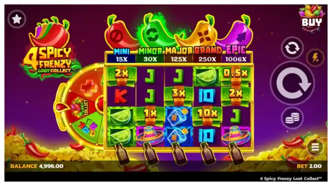 4 Spicy Frenzy Loot Collect™ blends structured paylines with evolving loot mechanics that transform simple spins into layered bonus potential. Although the base grid uses a 5×4 format with 25 fixed paylines, the game quickly shifts volatility once Pot symbols and Loot Collect mechanics begin interacting. Because Free Spins types can trigger alone or in combination, progression feels dynamic rather than predictable.