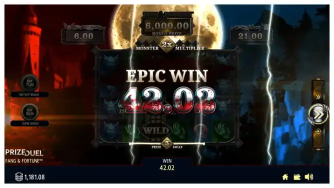 Randomly triggered, the Moonlight Multiplier Feature places wild multipliers directly on the reels, multiplying line wins instantly. The real showdown begins when three Scatters appear, triggering the FANG & FORTUNE™ Bonus. Players receive either a Vampire or Werewolf bonus, each offering locking multipliers that remain active throughout the feature.